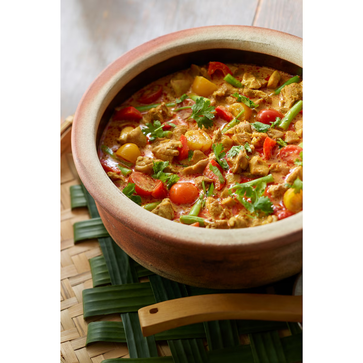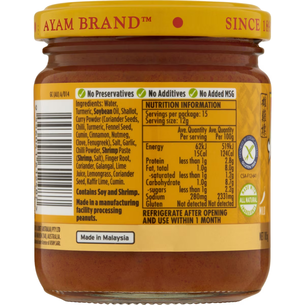 Ingrédients : Eau, curcuma, huile de soja, échalote, poudre de curry (graines de coriandre, piment, curcuma, graines de fenouil,