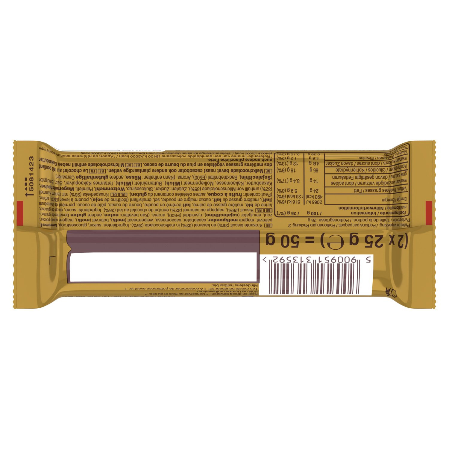Ingrédients: sucre, sirop de glucose, farine de BLÉ, matière grasse de palme, LAIT écrémé en poudre, beurre de cacao, pâte de cacao, perméat de lactosérum (LAIT), matière grasse du LAIT, cacao maigre en poudre, sel, émulsifiant (lécithine de SOJA), poudre à lever (E500), arôme.