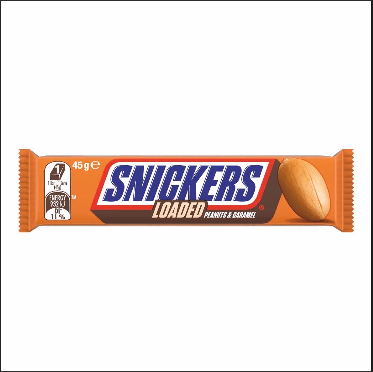 Contient : 1 barre chocolatée au lait SNICKERS Loaded de 45 g.