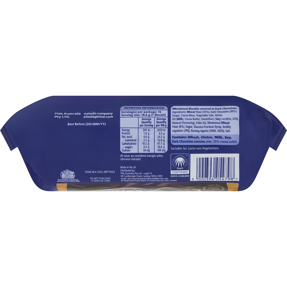 Ingrédients : Farine de blé (35 %), chocolat noir (30 %) (sucre, pâte de cacao, graisses végétales, beurre concentré (lait),
