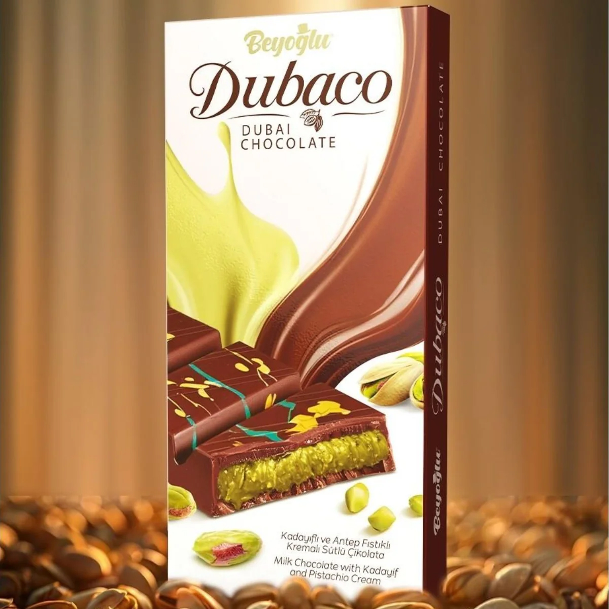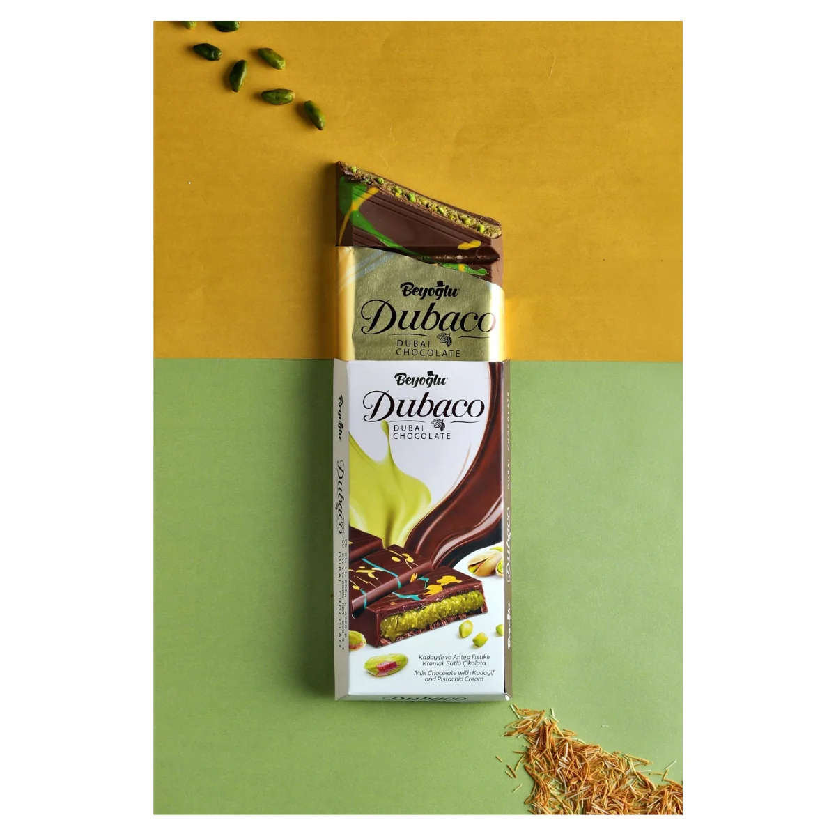 Ingrédients : Sucre, pistaches (17 %), beurre de cacao, lait entier en poudre (produit laitier), kadayif (7,5 %) (farine de blé