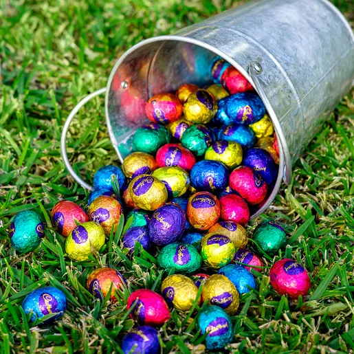 Les œufs CADBURY DAIRY MILK, joliment colorés et emballés dans du papier aluminium, ajoutent une touche de magie à la chasse