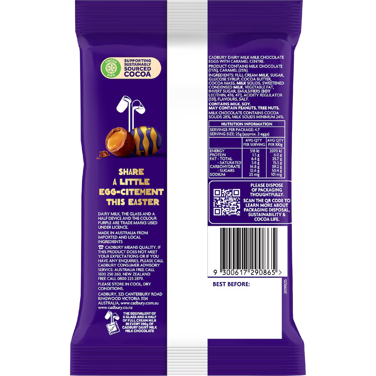 Le sachet d'œufs Cadbury Dairy Milk Caramello renferme de délicieux œufs de Pâques en chocolat au lait, fourrés