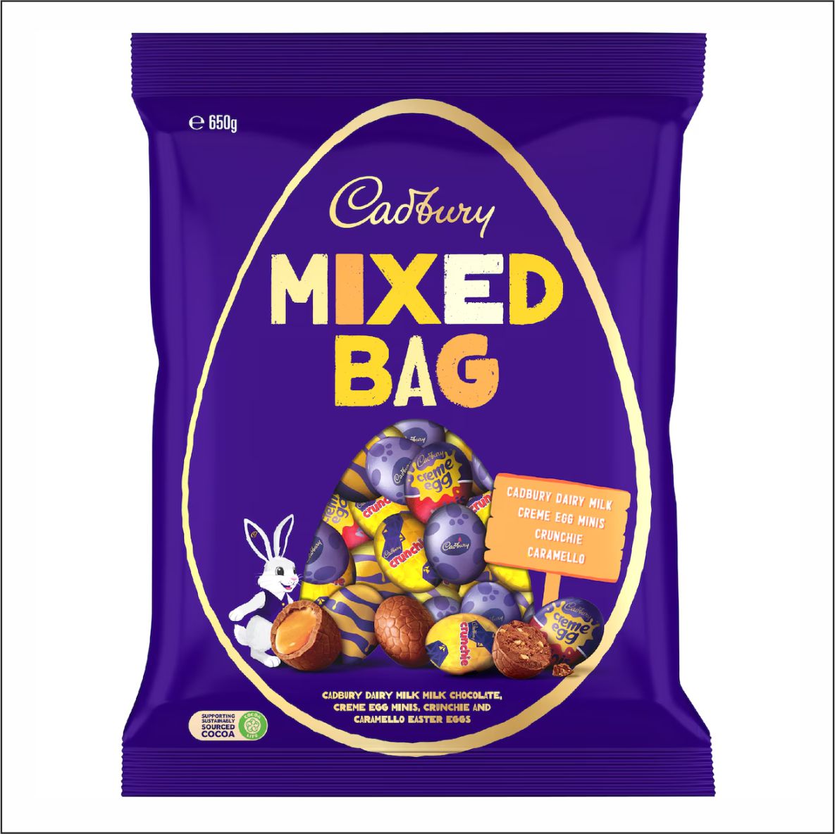 Ingrédients : Œufs en chocolat au lait Dairy Milk : Lait entier, sucre, beurre de cacao, pâte de cacao, matières sèches du lait,
