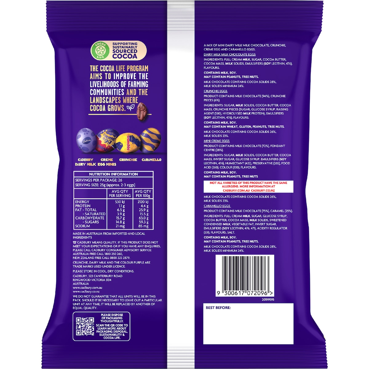 (lécithine de soja, E476), arômes. Mini œufs à la crème : Sucre, matières sèches du lait, beurre de cacao, pâte de cacao,