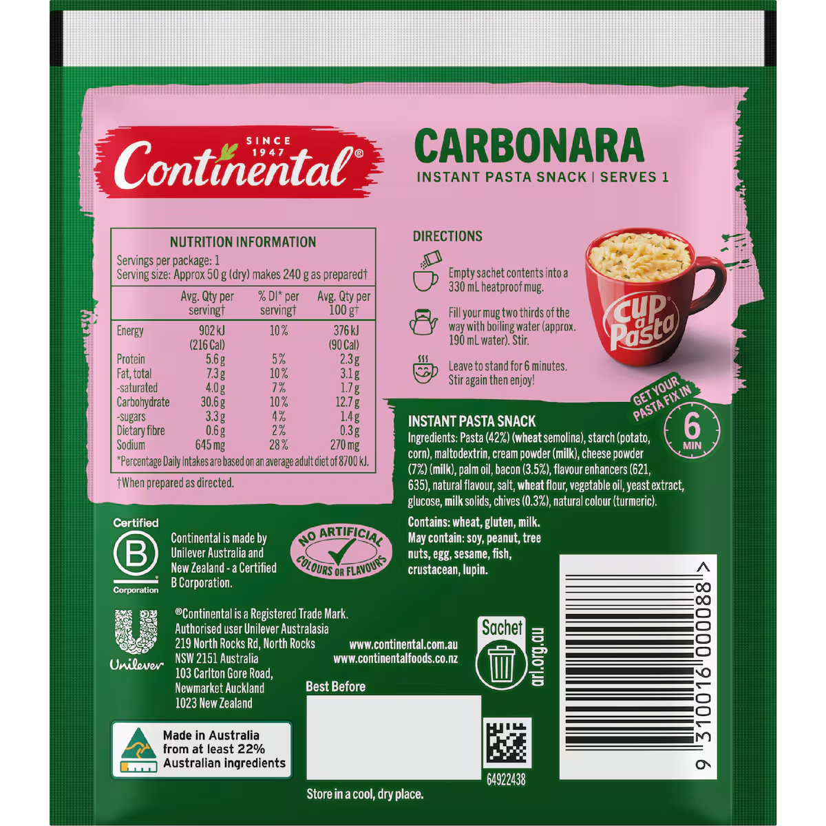 Envie de pâtes ? Un jeu d'enfant avec les Cup A Pasta Carbonara de Continental !