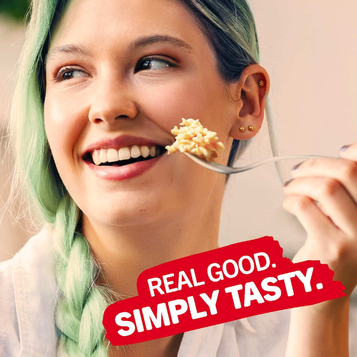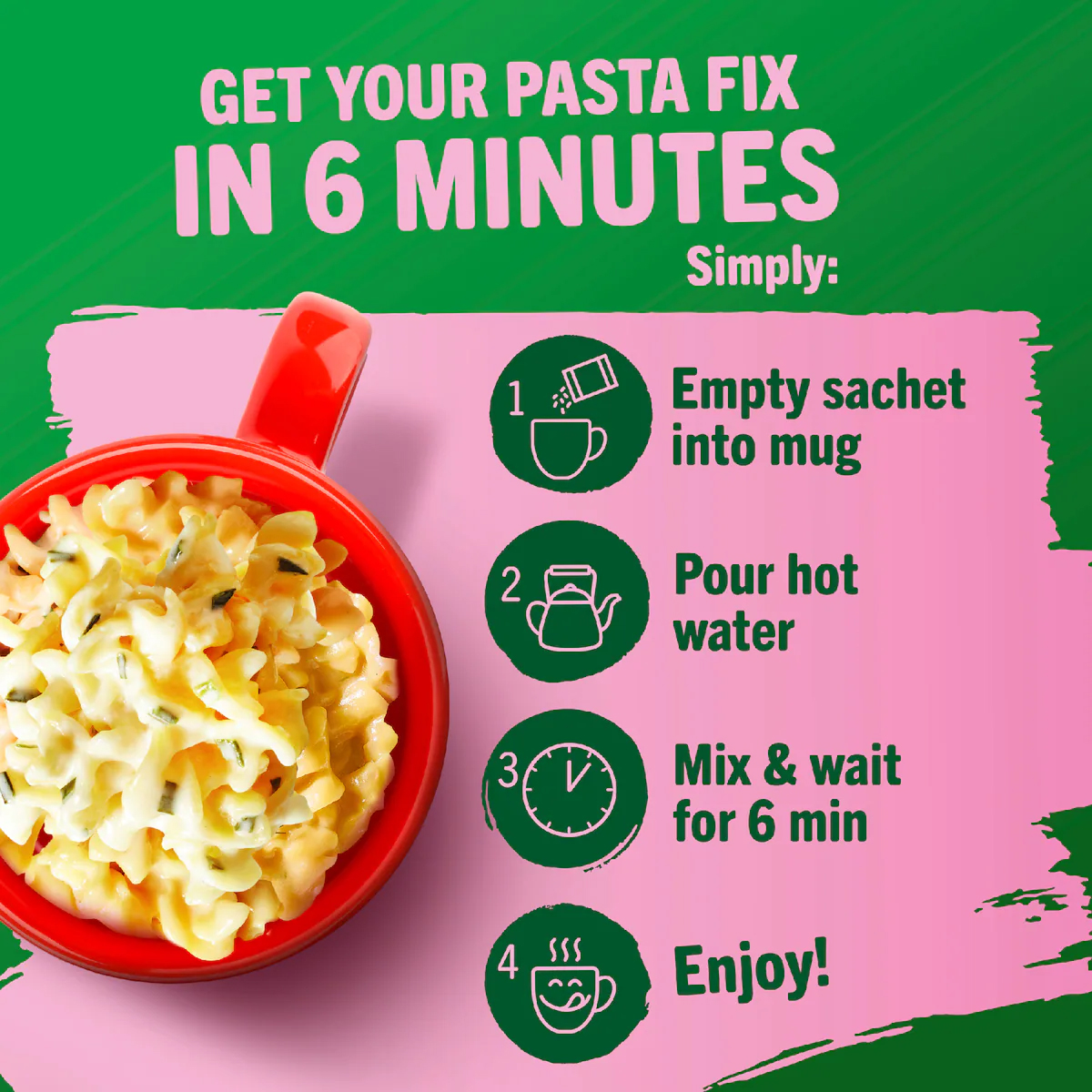 Disponibles en 5 saveurs irrésistibles : Carbonara, Bolognese, Macaroni au fromage, Tomate et Macaroni au fromage et Jalapeo.