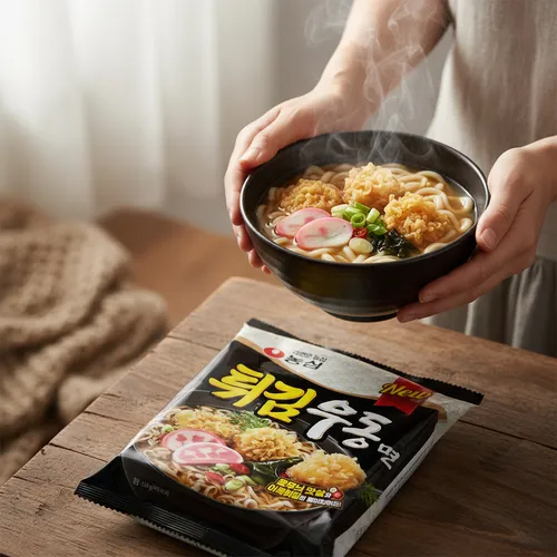 Ingrédients : Nouilles 83%: farine de BLÉ, fécule de pomme de terre, huile de palme, huile de tournesol, émulsifiant: E322 (contient SOJA), correcteur d’acidité: E501, E339, E500, colorant: E101 Assaisonnement en poudre 9%: assaisonnement (maltodextrine, protéines végétales hydrolysées (SOJA, BLÉ), sel, POISSONS, glucose), sel, sucre, glucose, assaisonnement (proivre noir, piment rouge, oignon), exhausteurs de goût: E511, E627, E631, E508; varech, huile d’assaisonnement (huile de colza, POISSON, protéines végétales hydrolysées (BLÉ, SOJA)) Flocons de légume et de POISSON 8%: gâteau de POISSON frit (farine de BLÉ, POISSON, huile de palme, SEICHE), gâteau de POISSON séché (POISSON, fécule de pomme de terre, amidon de BLÉ), carotte, oignon vert, varech