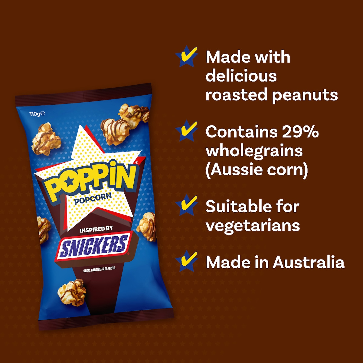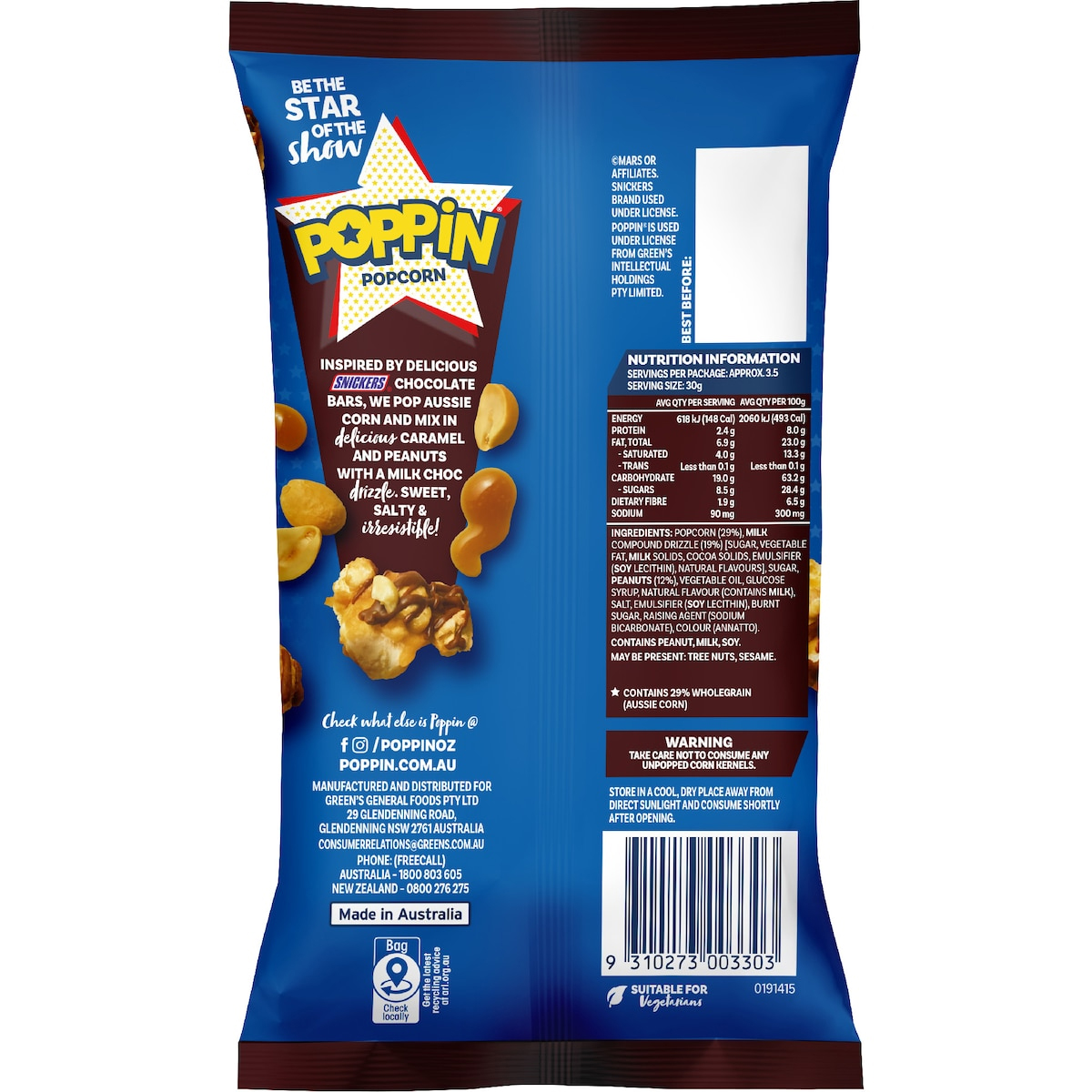 Ingrédients : POP-CORN (29%), SAUCE COMPOSÉE AU LAIT (19%) (SUCRE, MATIÈRE GRASSE VÉGÉTALE, EXTRAITS