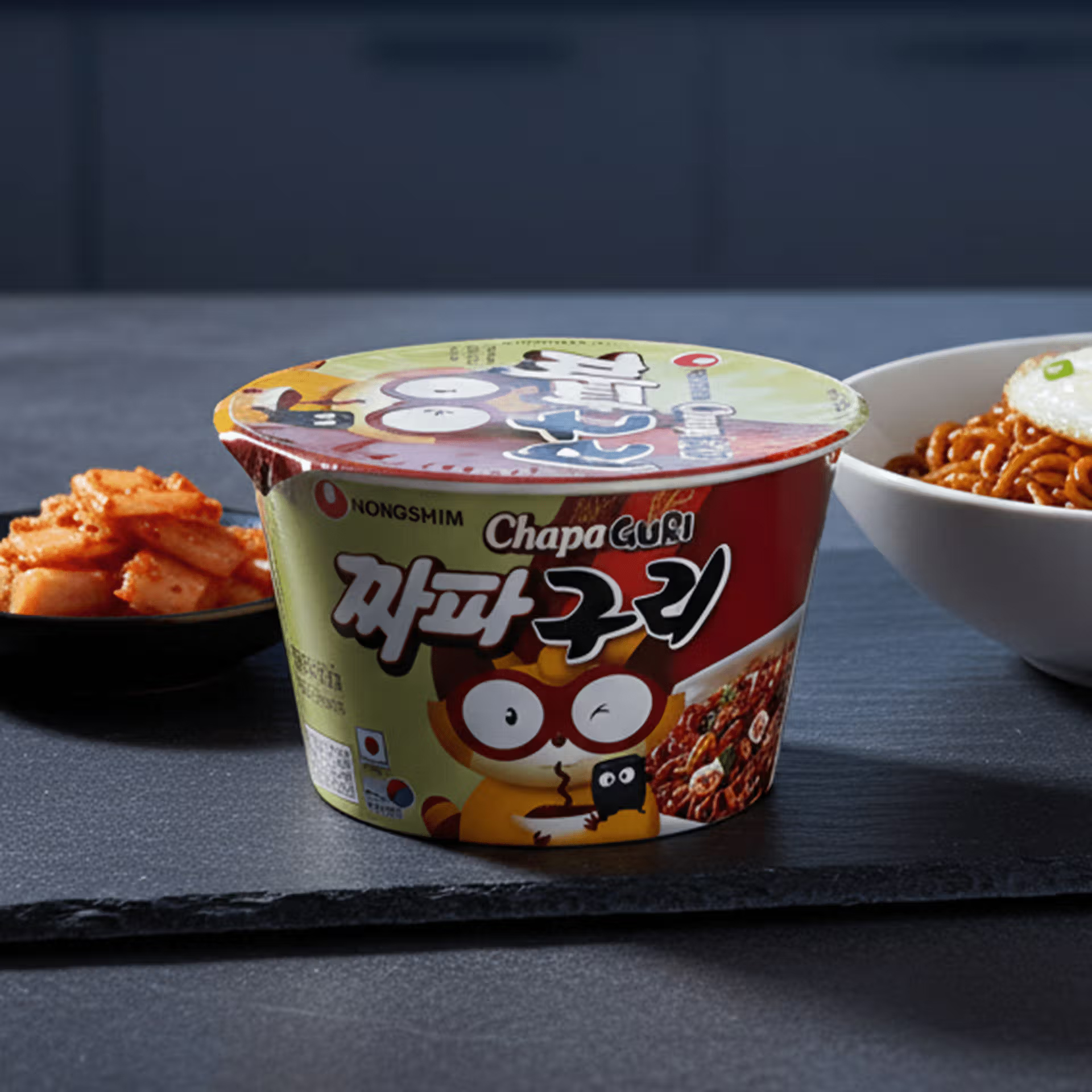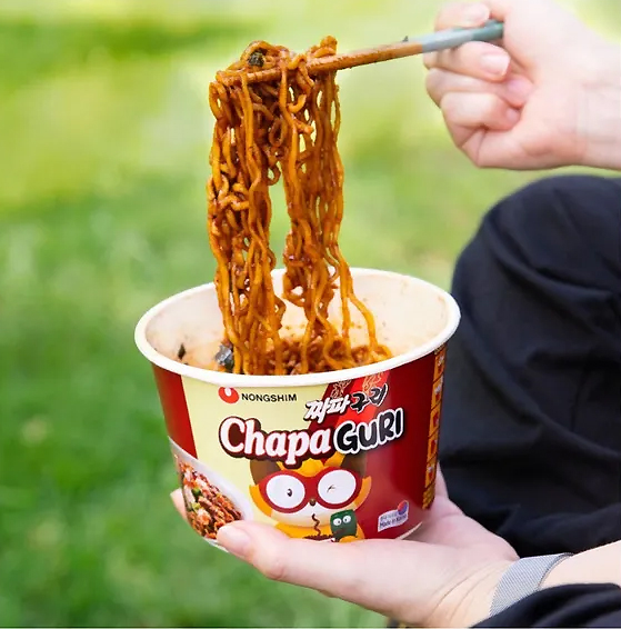 Épaisses et moelleuses, les nouilles chapagetti, riches en saveurs grâce au chajjang et au neoguri, composent un bol généreux