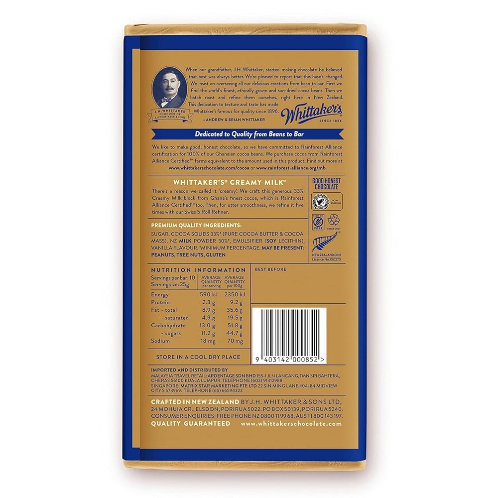 Tablette au chocolat WHITTAKER’S Creamy milk 250g